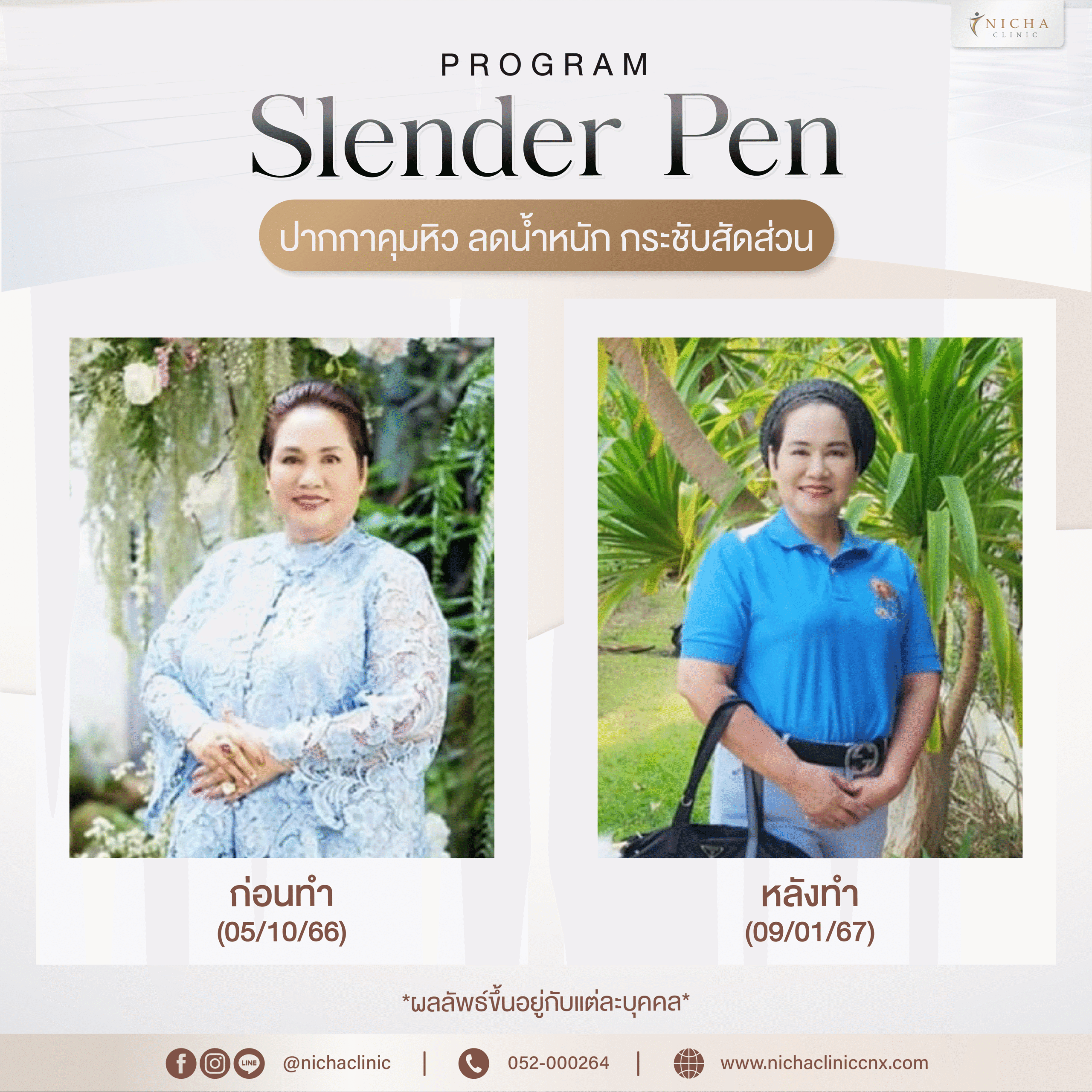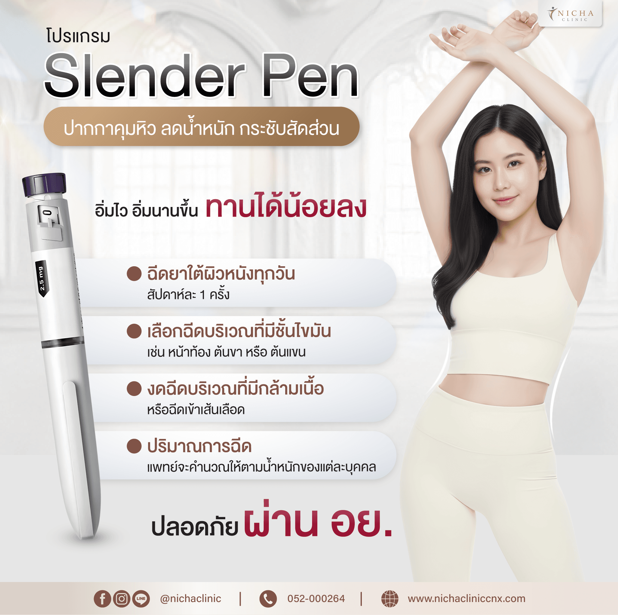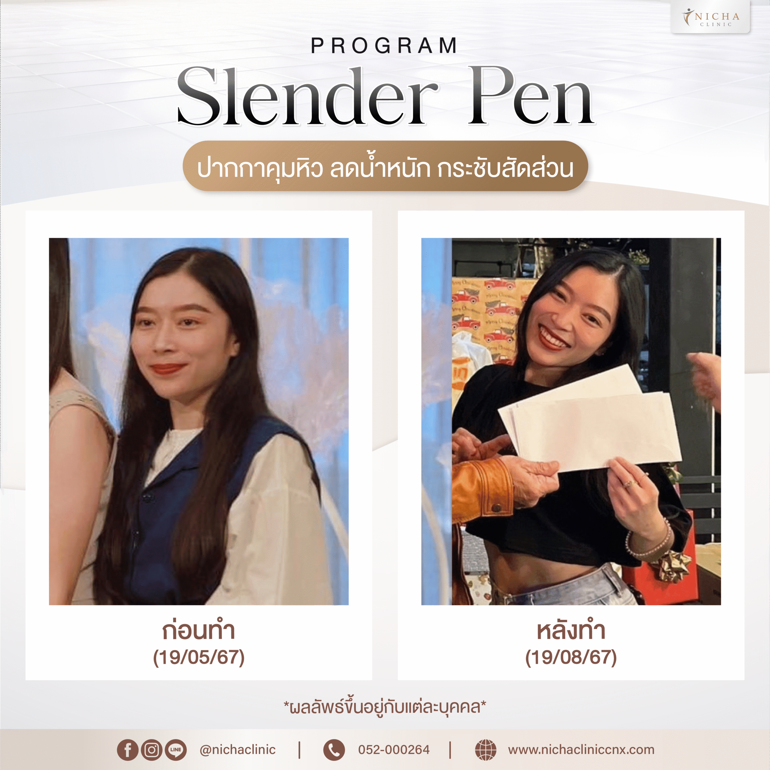 จุดเด่นของ Program Slender Pen คือ 1 ด้ามใช้ได้นาน 2-3 เดือน ไม่ต้องฉีดทุกวัน